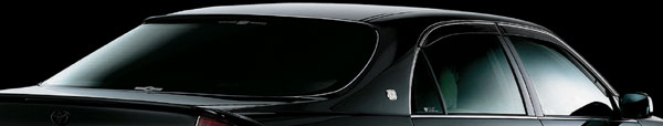 | ビッグセダンにおけるドレスアップの方向性として、車全体の一体感が挙げられる。その中には当然ウインドウも含まれるのではないだろうか?本来透明であるウインドウにフィルムを貼ることで、さらなる一体感を演出する。ジャンクションプロデュースはそのフィルムによる演出を車種別に設定、それが「ジャンクションプロデュース・ウインドフィルム」である。その機能はスタイルだけでなく、室内温度の上昇を防いだりエアコンの効きをより確実なものにする。また、最初から車種別にコンピューターでカットしてあるので、後は貼付けるだけで手軽に車全体の一体感を演出する。 |