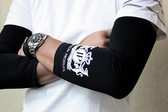 既存のサポーターは1枚売りが基本ですが、組み合わせのバリエーションを豊富に増やすために敢えて黒無地をセットして発売します。 左右逆に着ける事によりロゴ/マークが逆になり、その日の気分で着こなせます。 素材は肌触りの良いポリエステルに伸縮性を持たせるポリウレタンを含んだ素材を使用し、JUNCTION PRODUCE ロゴとマークをシンプルにあしらったデザインです。